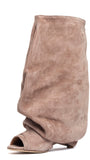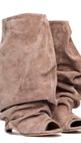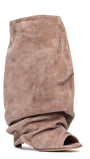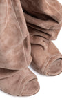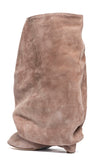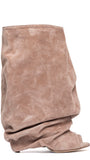 Stivali spuntati in camoscio rosa antico arricciati.