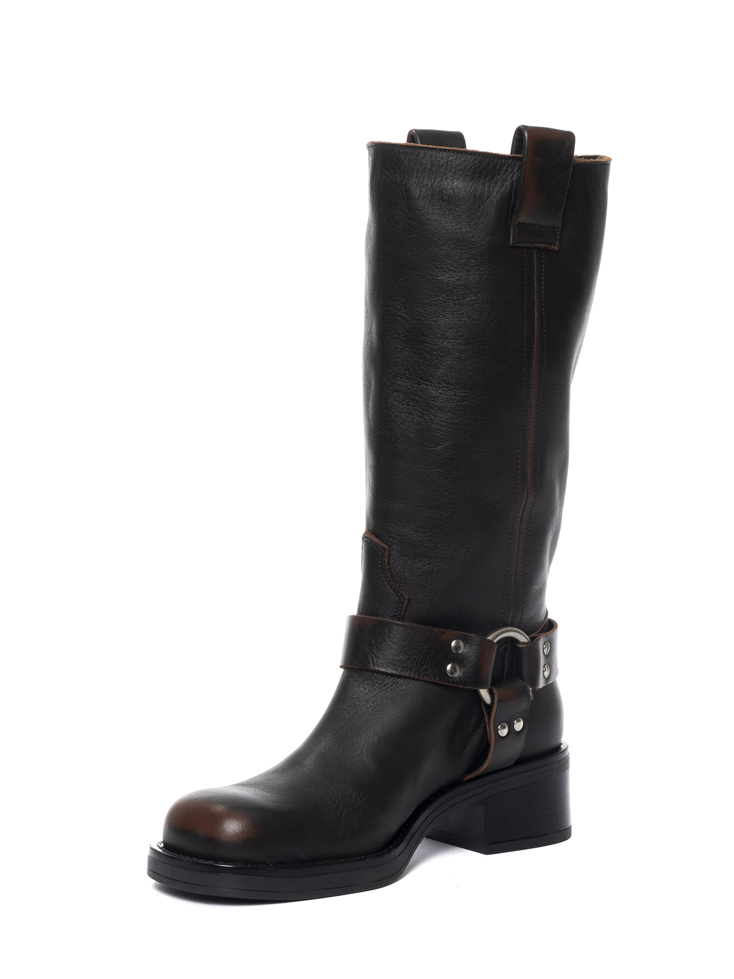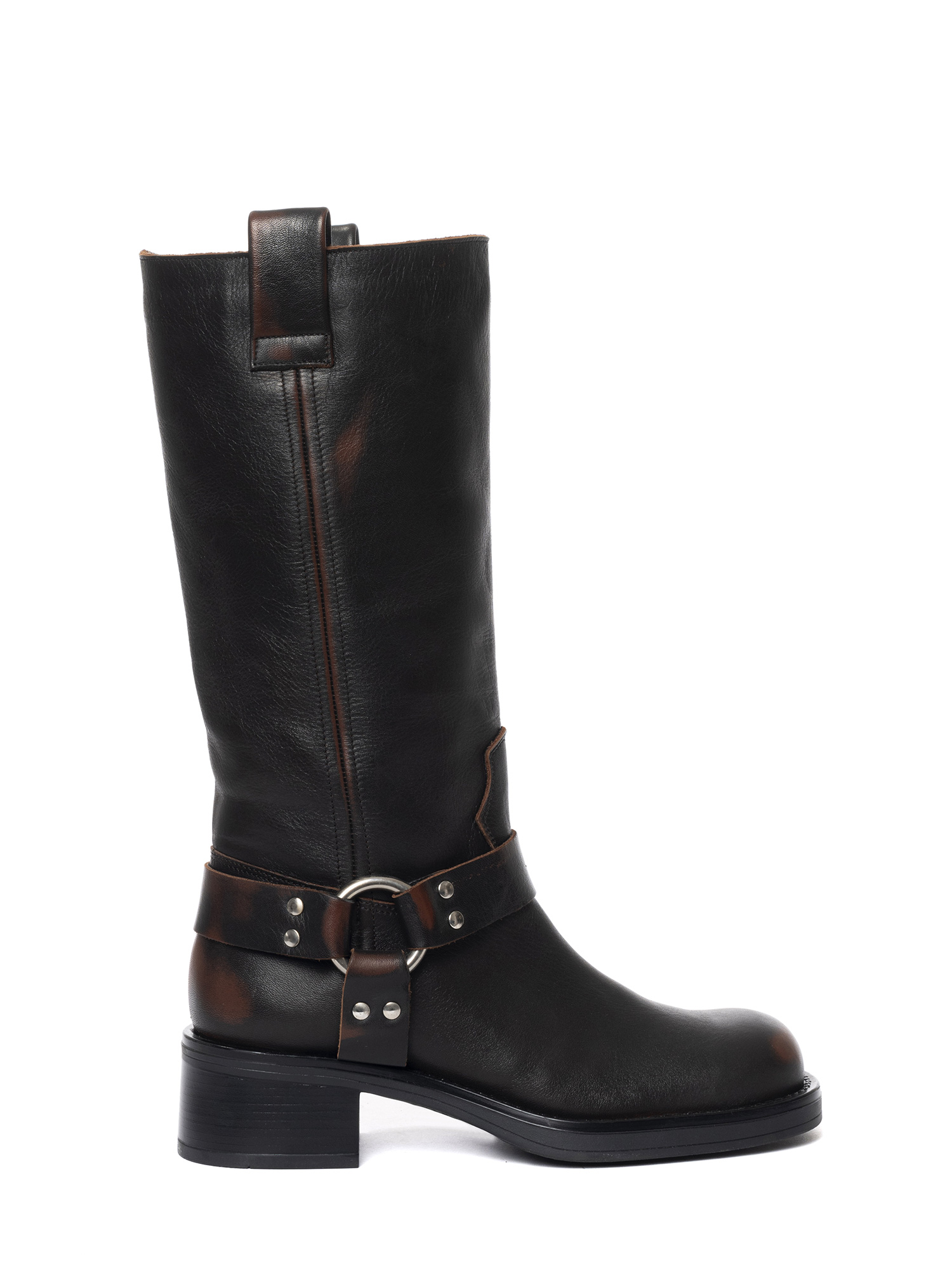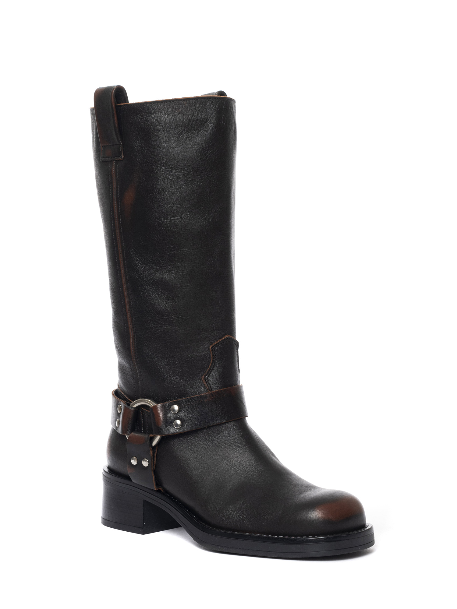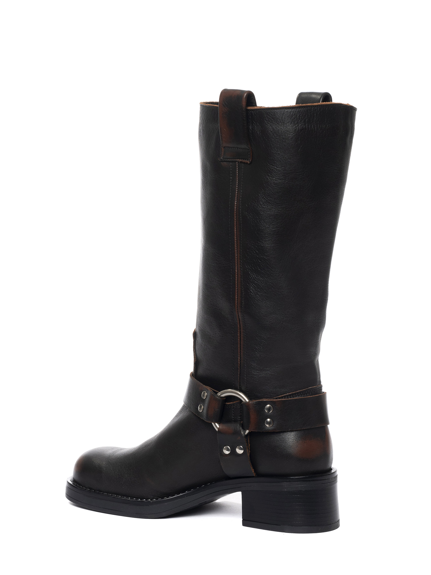 Biker in vitello asportato marrone con fibbia in argento.