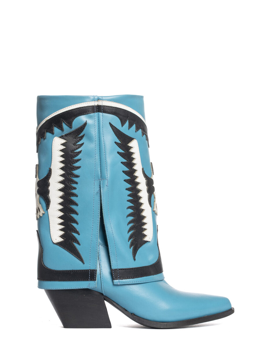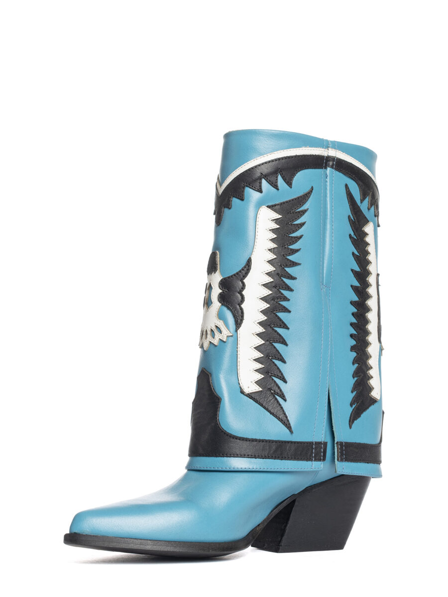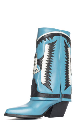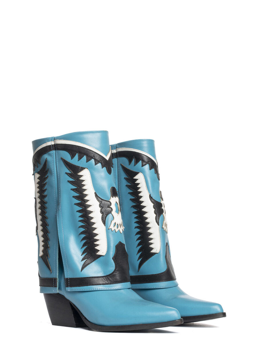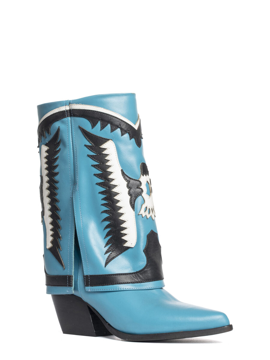 Stivali texani in vitello azzurro.