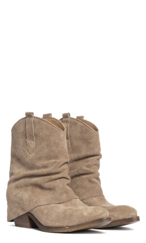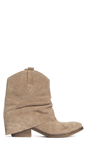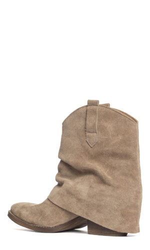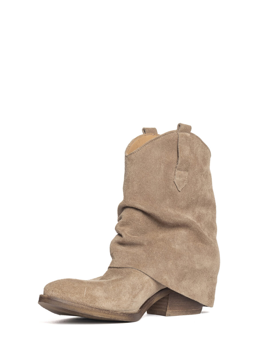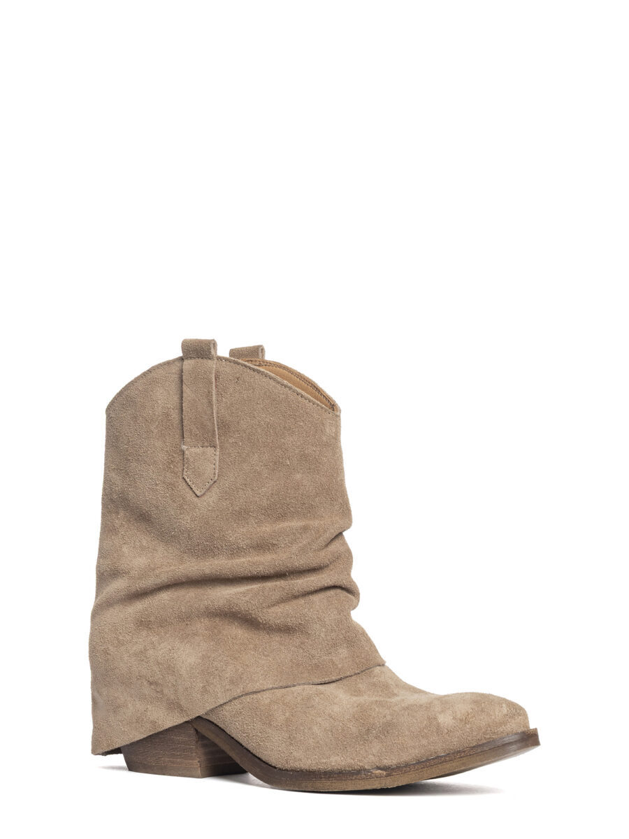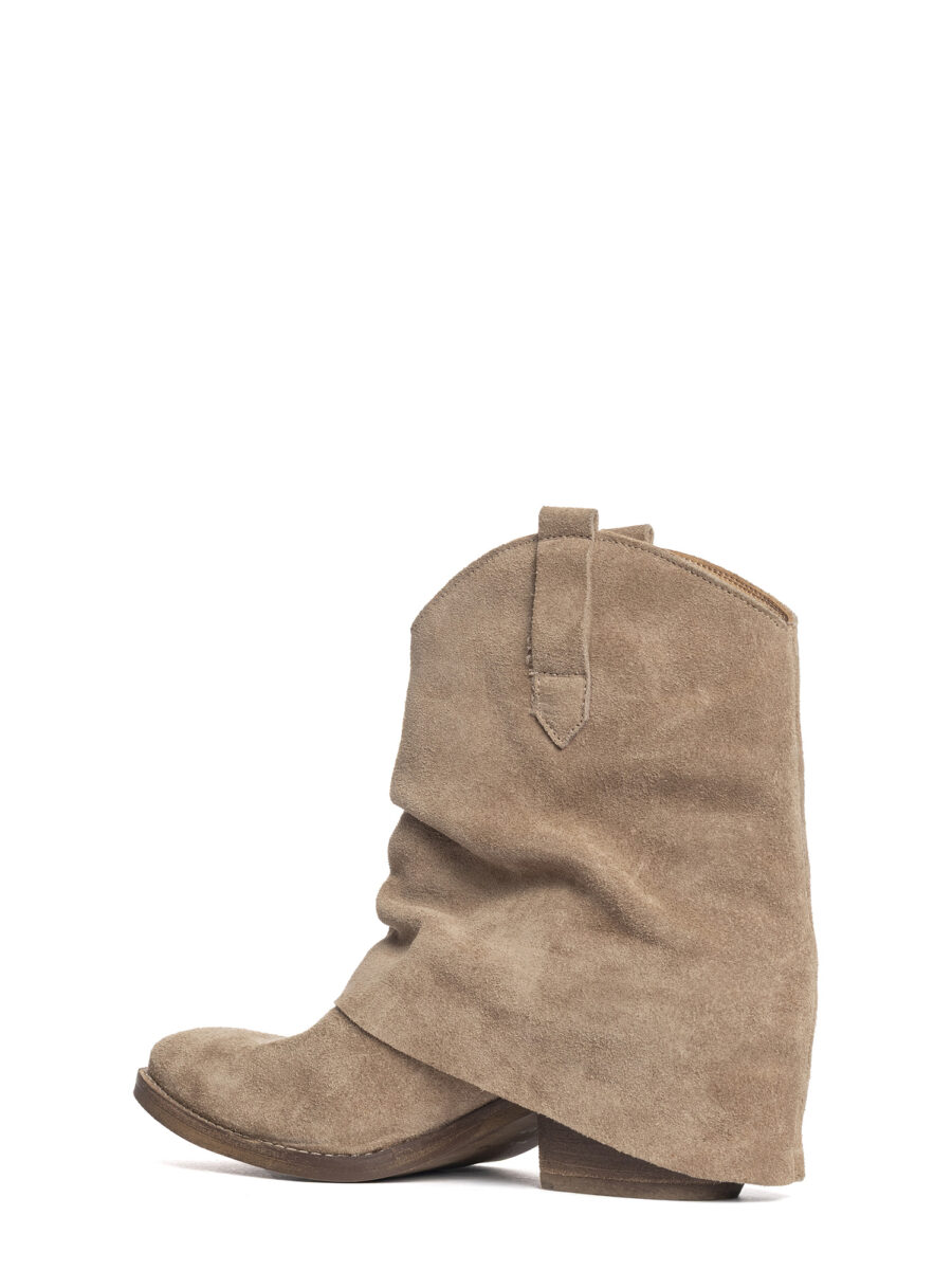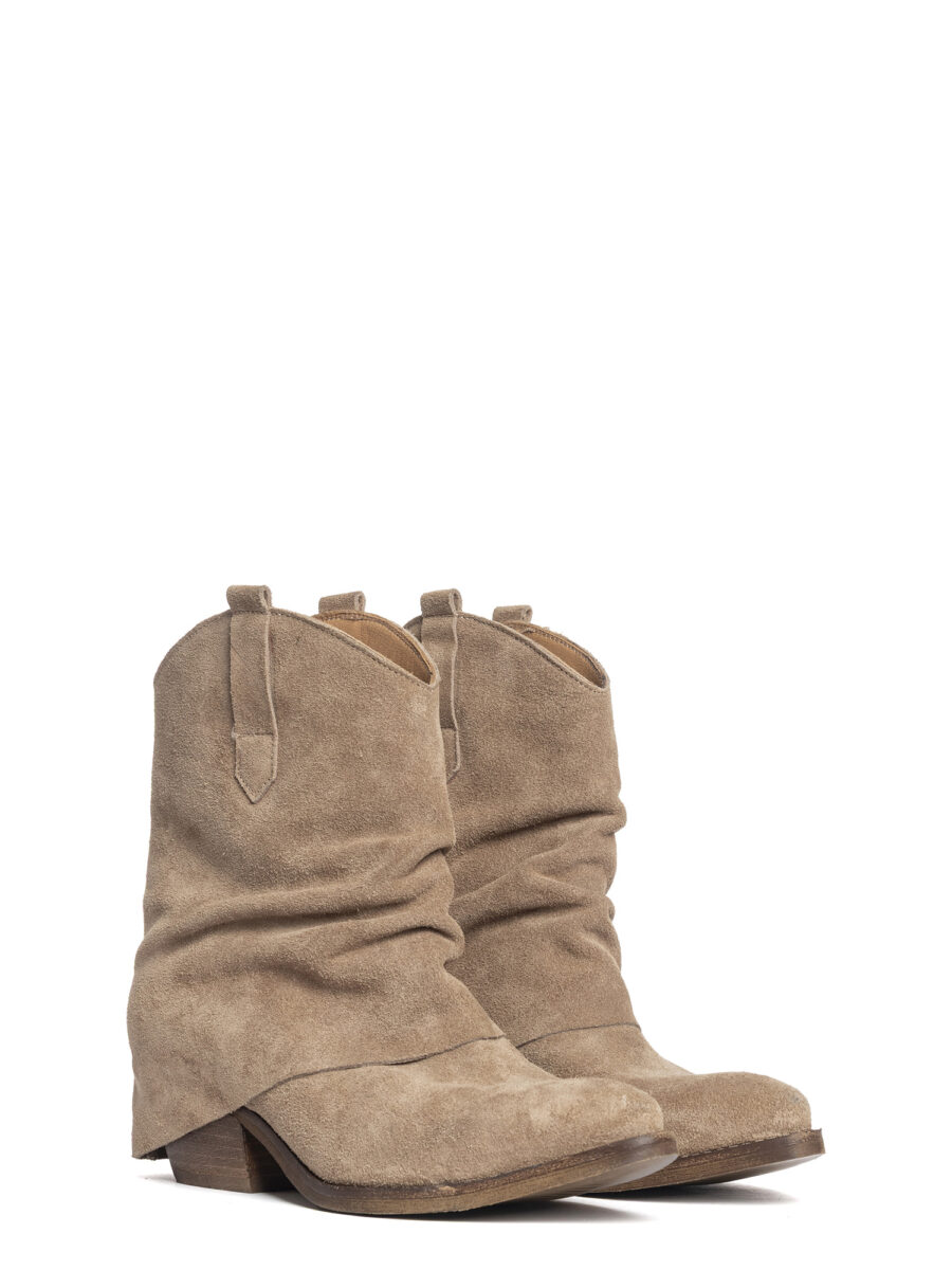 Tronchetti texani in camoscio taupe.