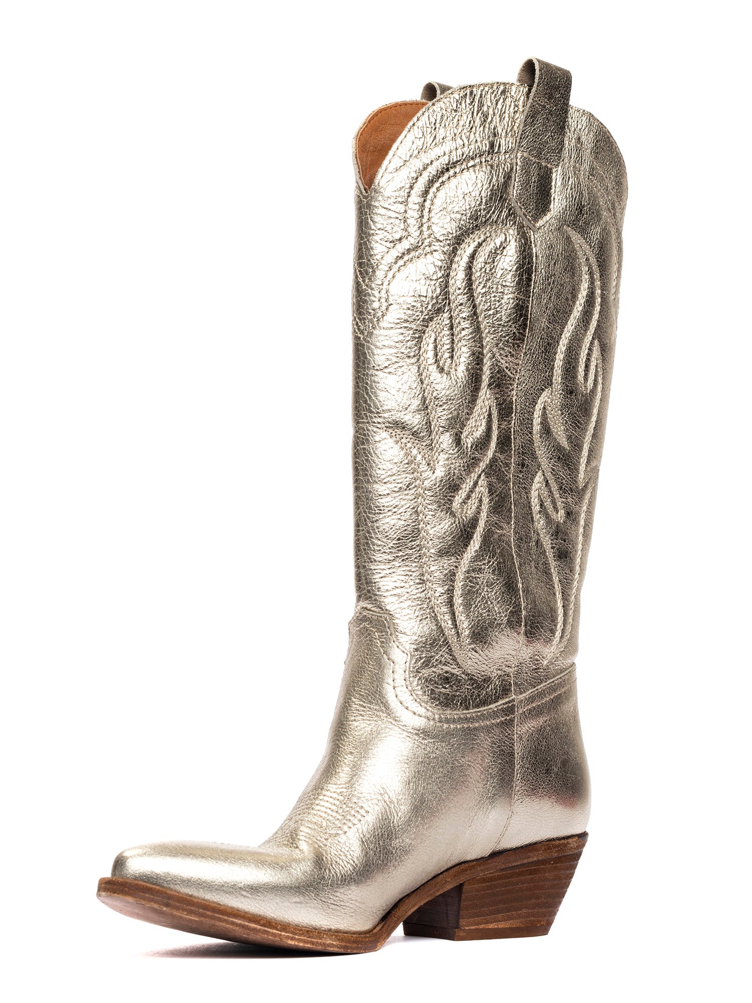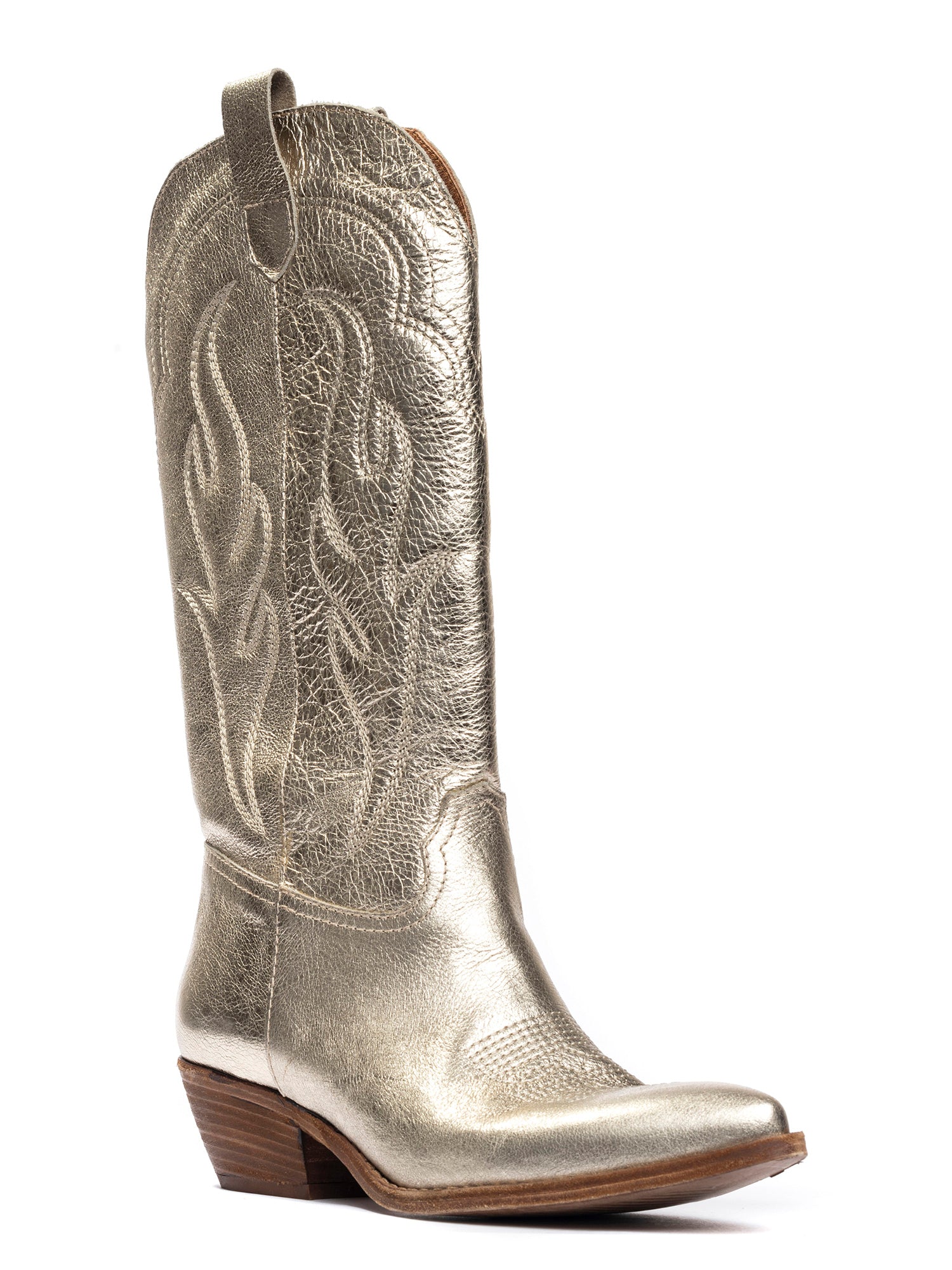 Dominga Stivali texani in pelle laminata oro