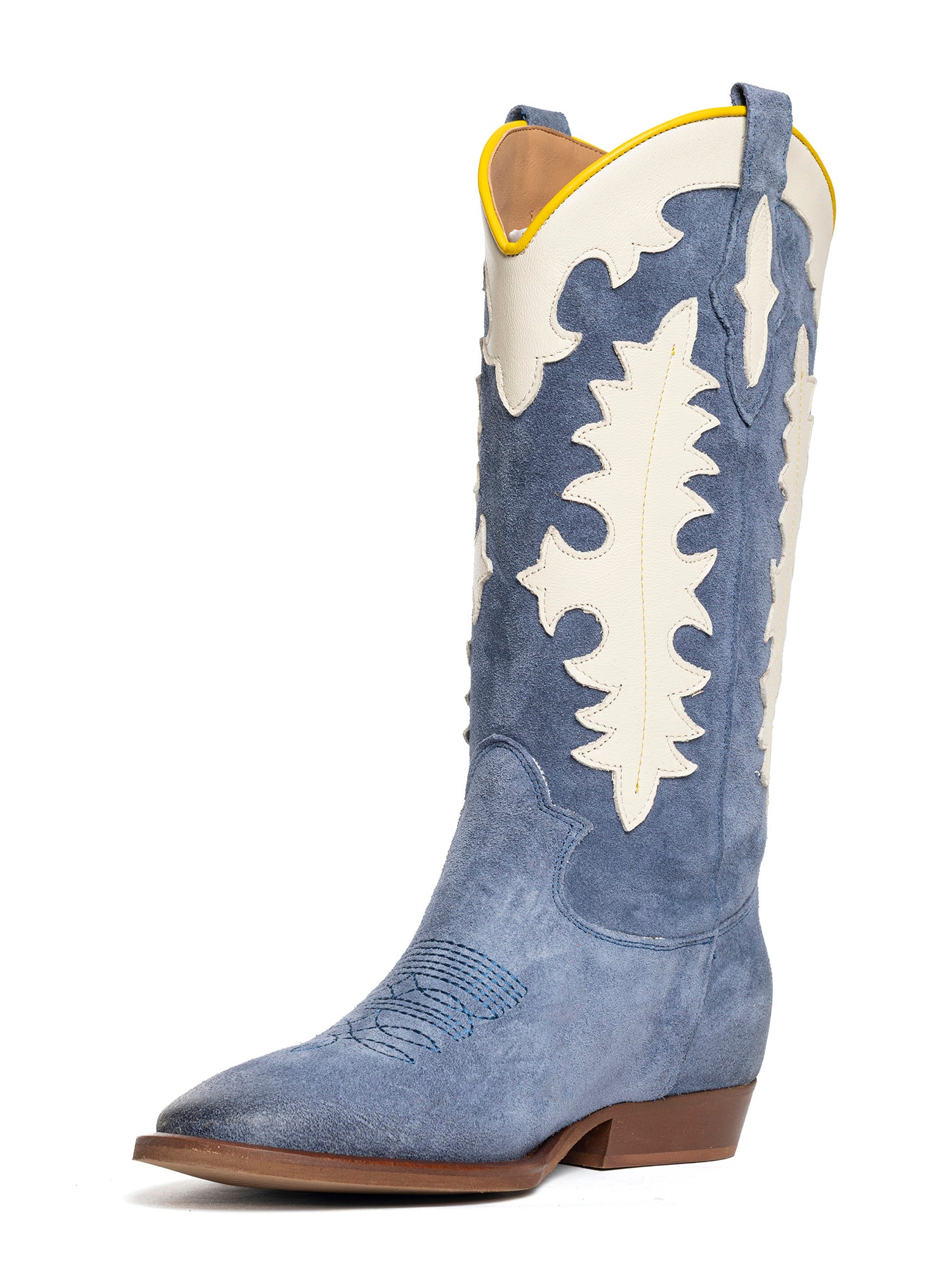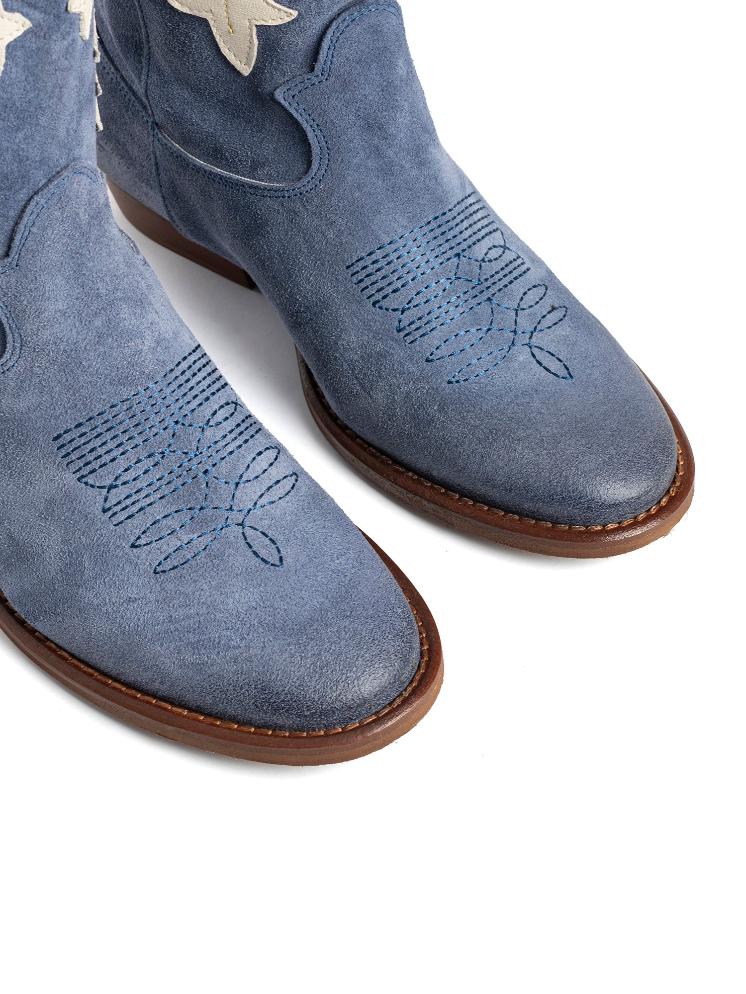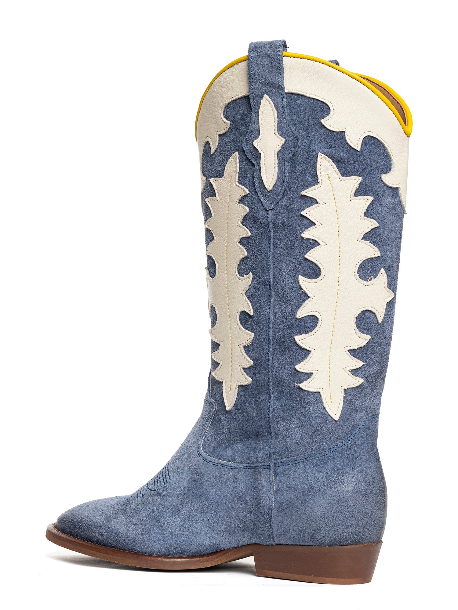 Stivali texani in camoscio calcite con decori in contrasto
