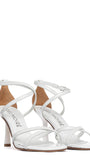 Sandali Denise in nappa bianco vernice con incrocio e cinturino alla caviglia Codice: Denise Categoria: sandali Materiale: nappa finish vernice Colore: bianco Suola: gomma Chiusura: cinturino Altezza tacco: 7 cm
